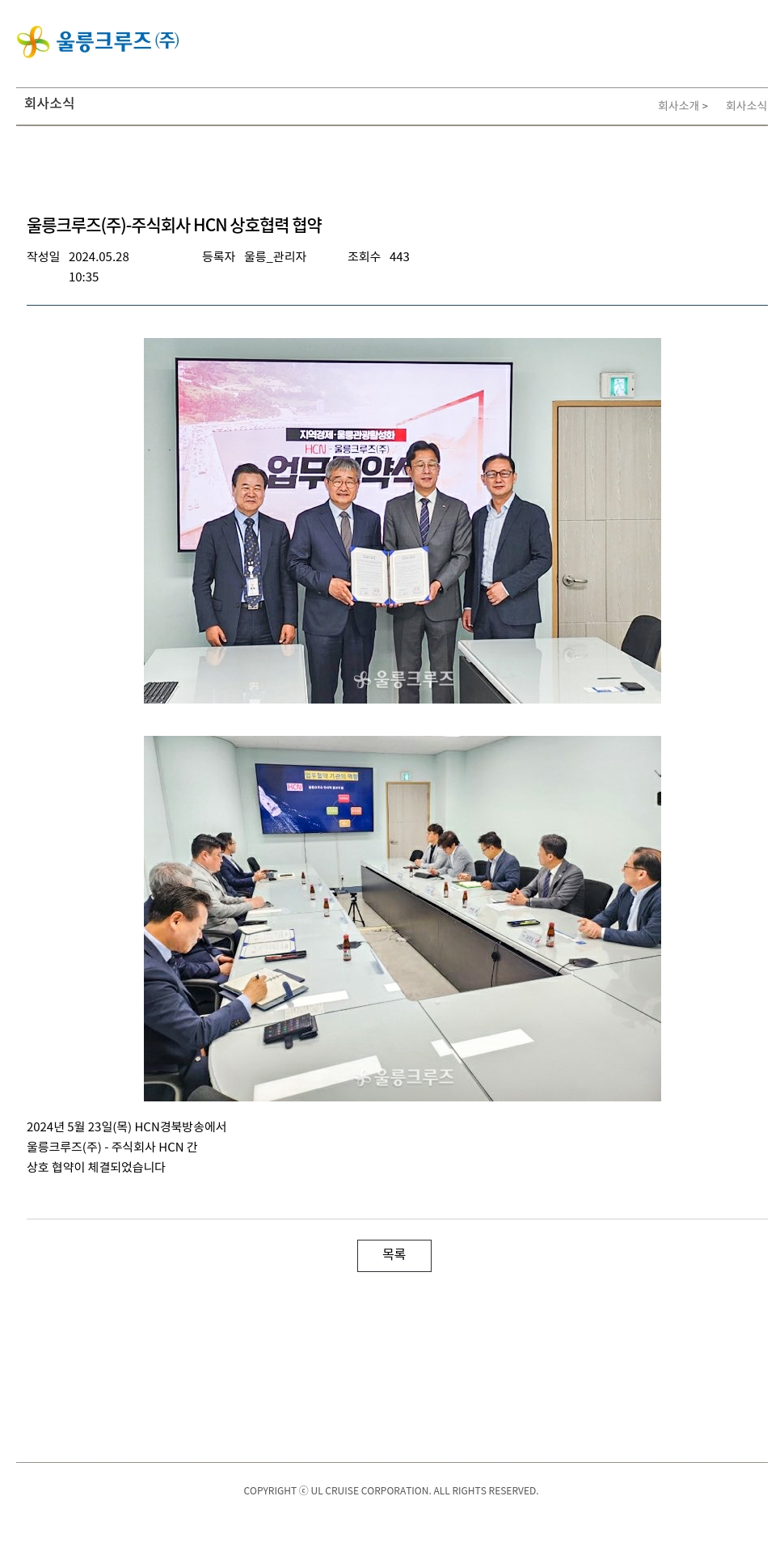 2024년 5월 23일(목) HCN경북방송에서 울릉크루즈(주) - 주식회사 HCN 간 상호 협약이 체결되었습니다