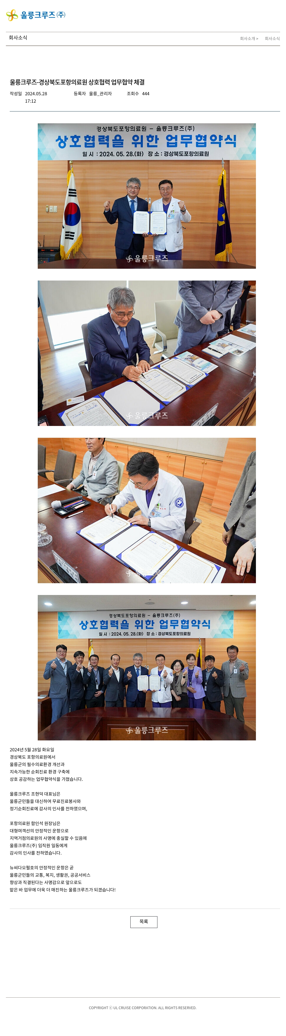 울릉크루즈-경상북도포항의료원 상호협력 업무협약 체결