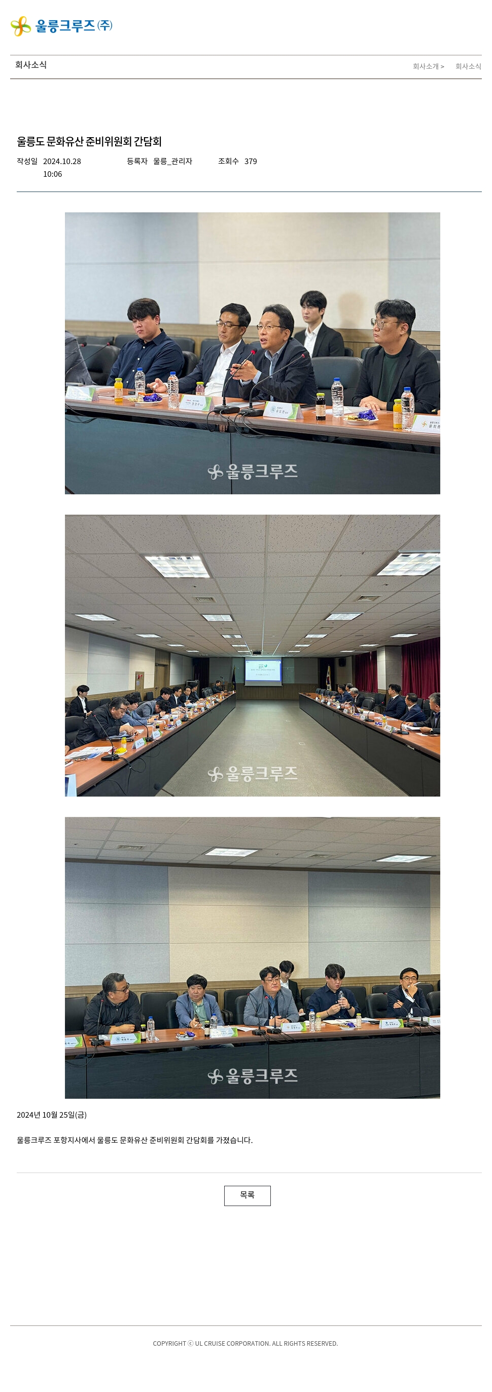 2024년 10월 25일(금) 울릉크루즈 포항지사에서 울릉도 문화유산 준비위원회 간담회를 가졌습니다.