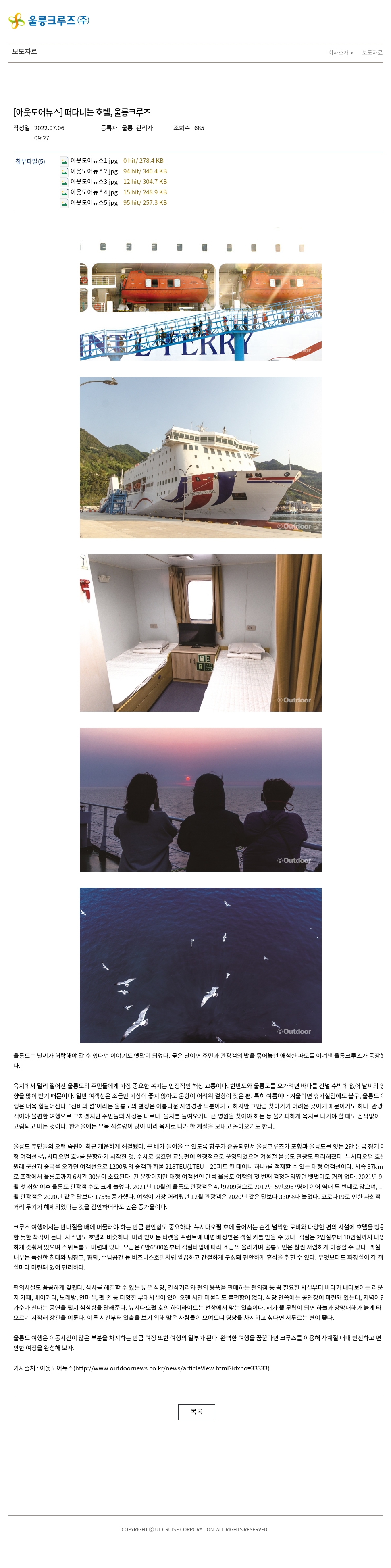 [아웃도어뉴스] 떠다니는 호텔, 울릉크루즈