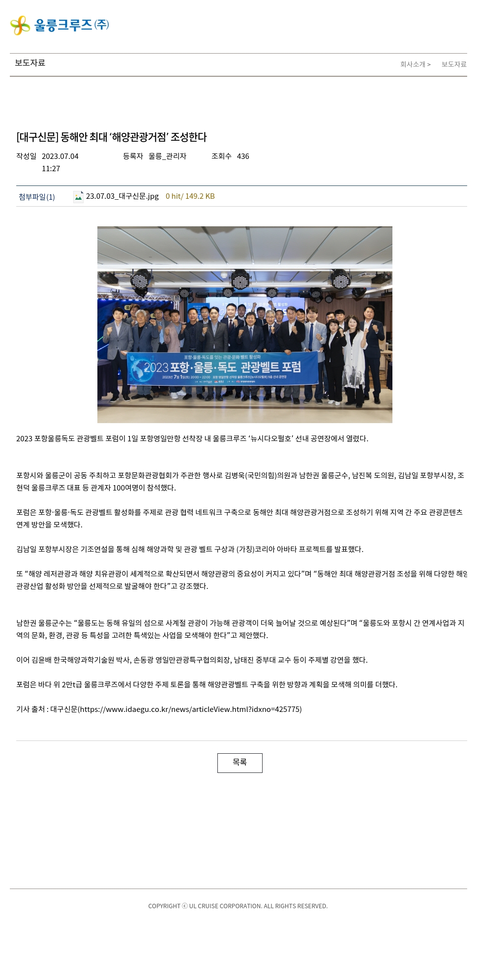 2023 포항울릉독도 관광벨트 포럼이 1일 포항영일만항 선착장 내 울릉크루즈 ‘뉴시다오펄호’ 선내 공연장에서 열렸다.
