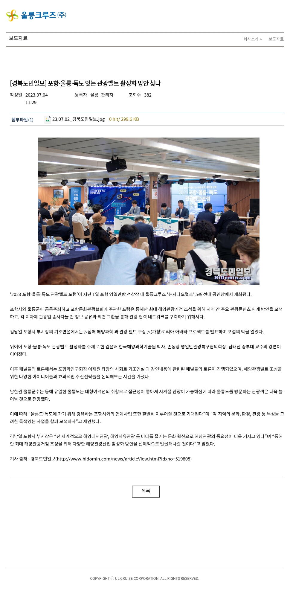 [경북도민일보] 포항·울릉·독도 잇는 관광벨트 활성화 방안 찾다
