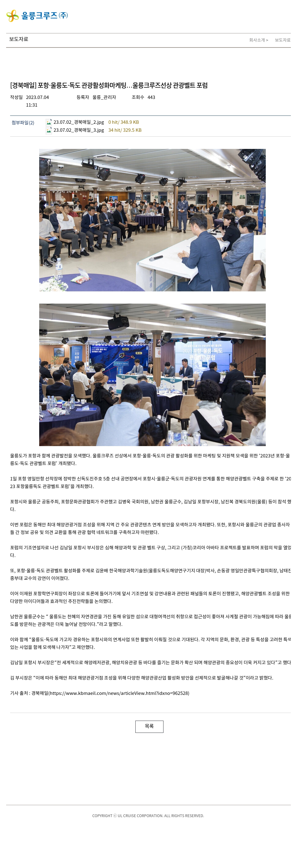 [경북매일] 포항·울릉도·독도 관광활성화마케팅…울릉크루즈선상 관광벨트 포럼