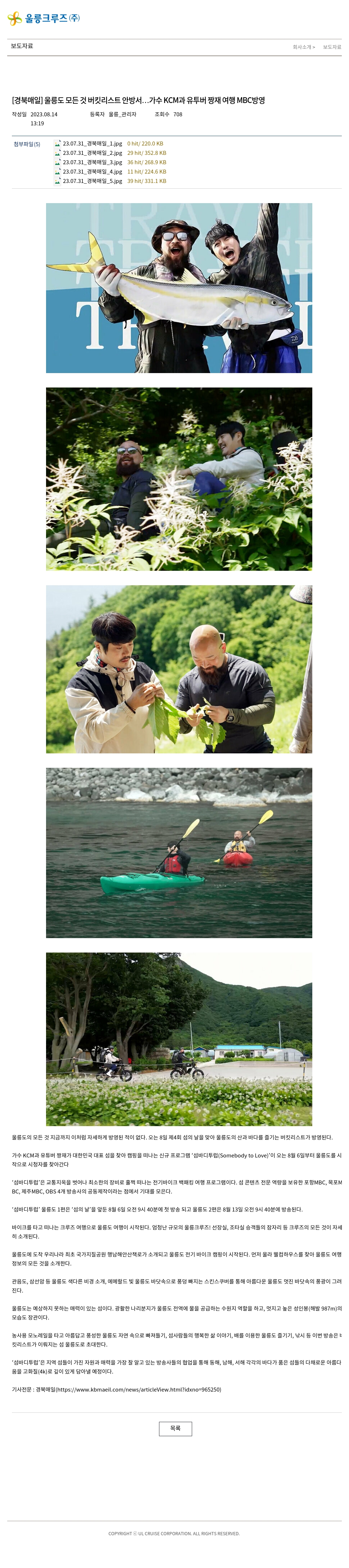 [경북매일] 울릉도 모든 것 버킷리스트 안방서…가수 KCM과 유투버 짱재 여행 MBC방영