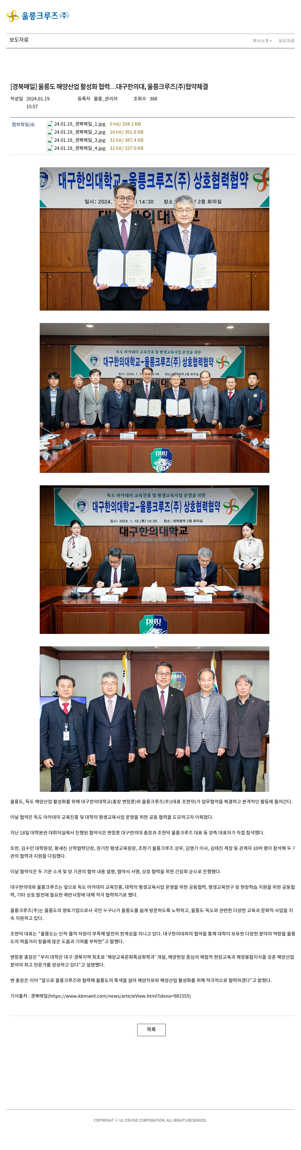 [경북매일] 울릉도 해양산업 활성화 협력…대구한의대, 울릉크루즈(주)협약체결