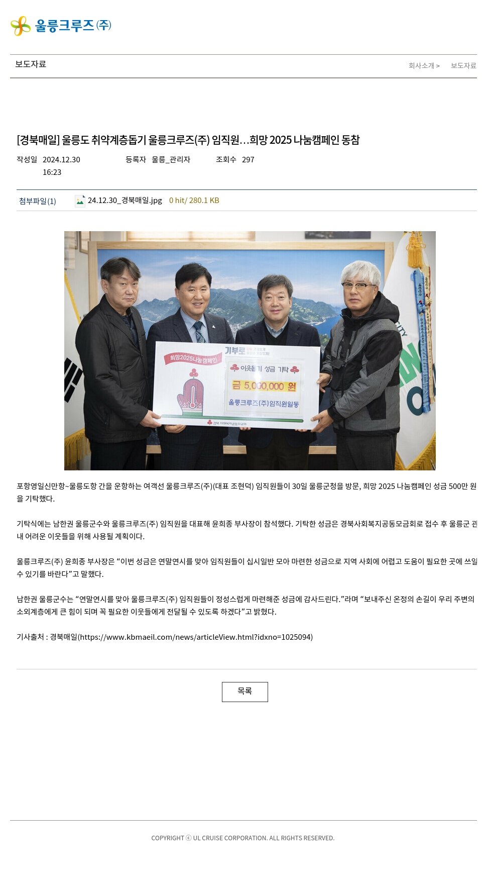 [경북매일] 울릉도 취약계층돕기 울릉크루즈(주) 임직원…희망 2025 나눔캠페인 동참