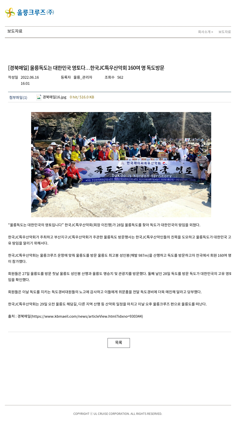 [경북매일] 울릉독도는 대한민국 영토다…한국JC특우산악회 160여 명 독도방문