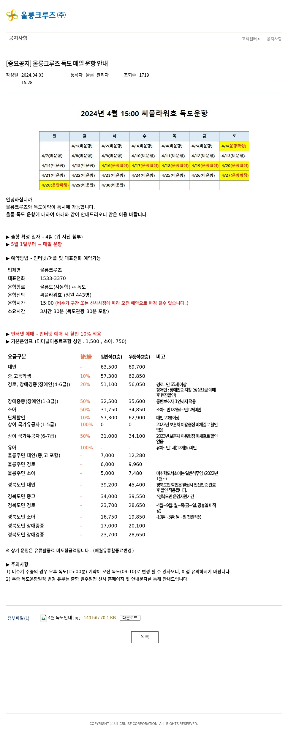 [중요공지] 울릉크루즈 독도 매일 운항 안내
