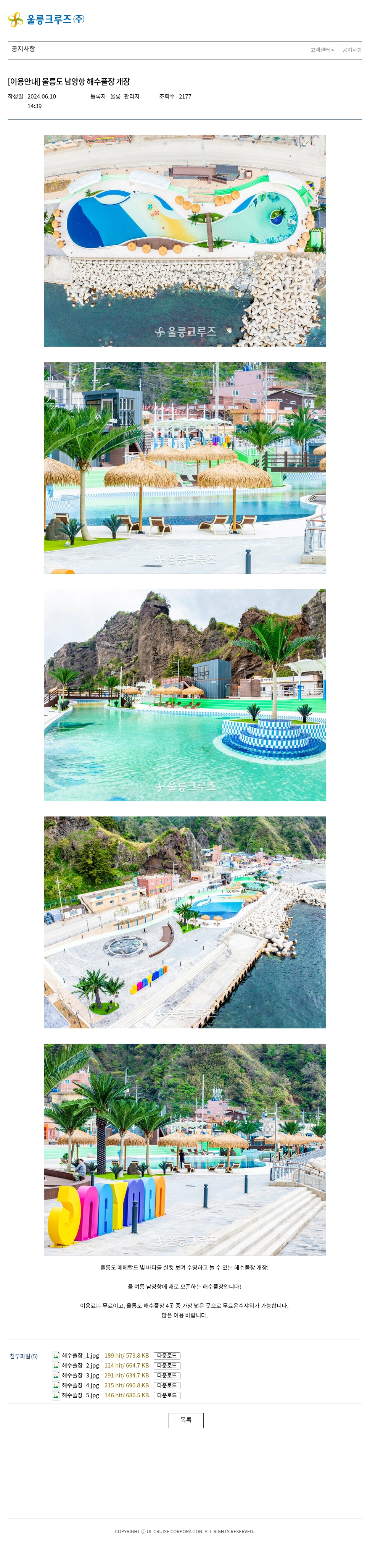 [이용안내] 울릉도 남양항 해수풀장 개장