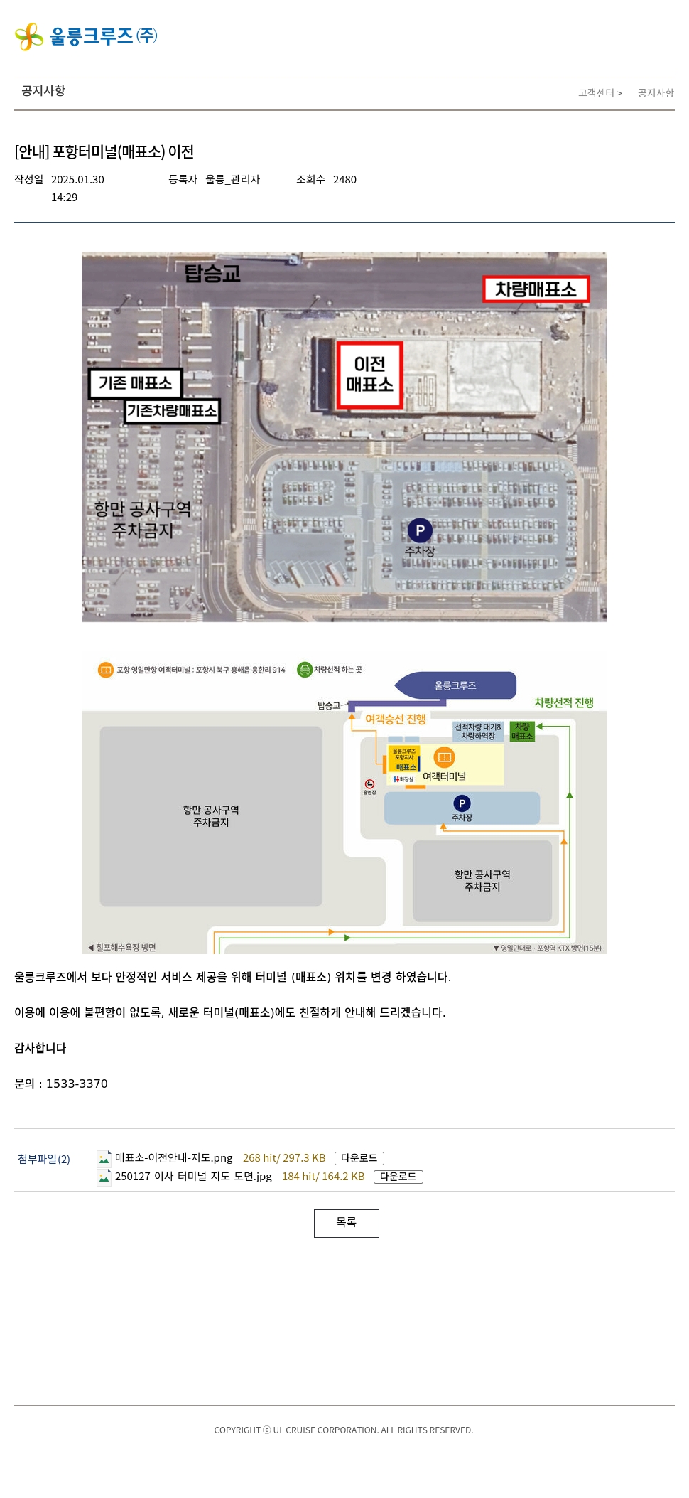 울릉크루즈에서 보다 안정적인 서비스 제공을 위해 터미널(매표소) 위치를 변경 하였습니다.
