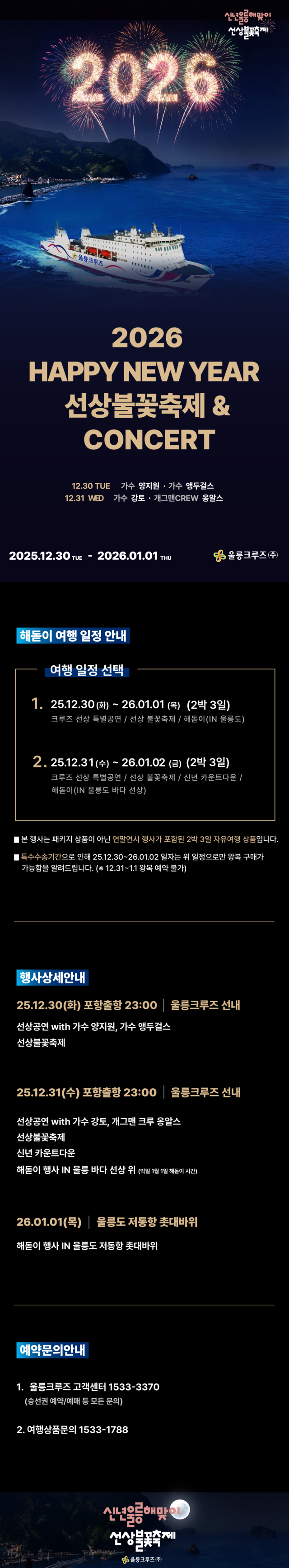 2025년의 마지막과 2026년의 시작을 울릉크루즈에서 특별하게 맞이하시기 바랍니다.