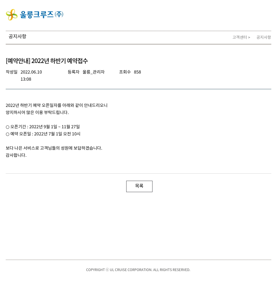 2022년 하반기 예약 오픈일자를 아래와 같이 안내드리오니