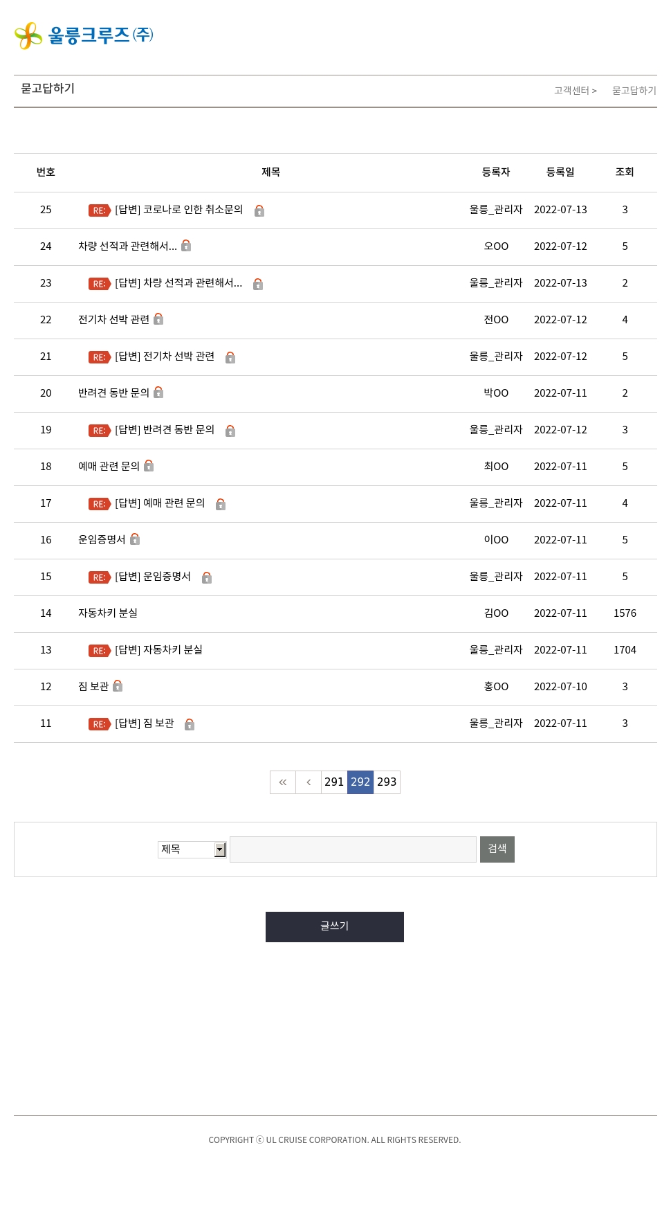 17 | [답변글][답변] 예매 관련 문의비공개글 | 울릉_관리자 | 2022-07-11 | 4 |