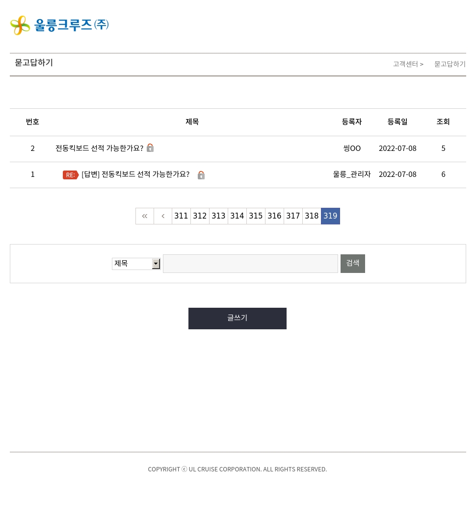 묻고답하기 게시물. 총 4772건, 319페이지 중 319페이지 2건 입니다. 본 데이터표는 5컬럼, 2로우로 구성되어 있습니다. 각 로우는 번호, 제목, 등록자, 등록일, 조회로 구성되어 있습니다.