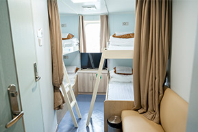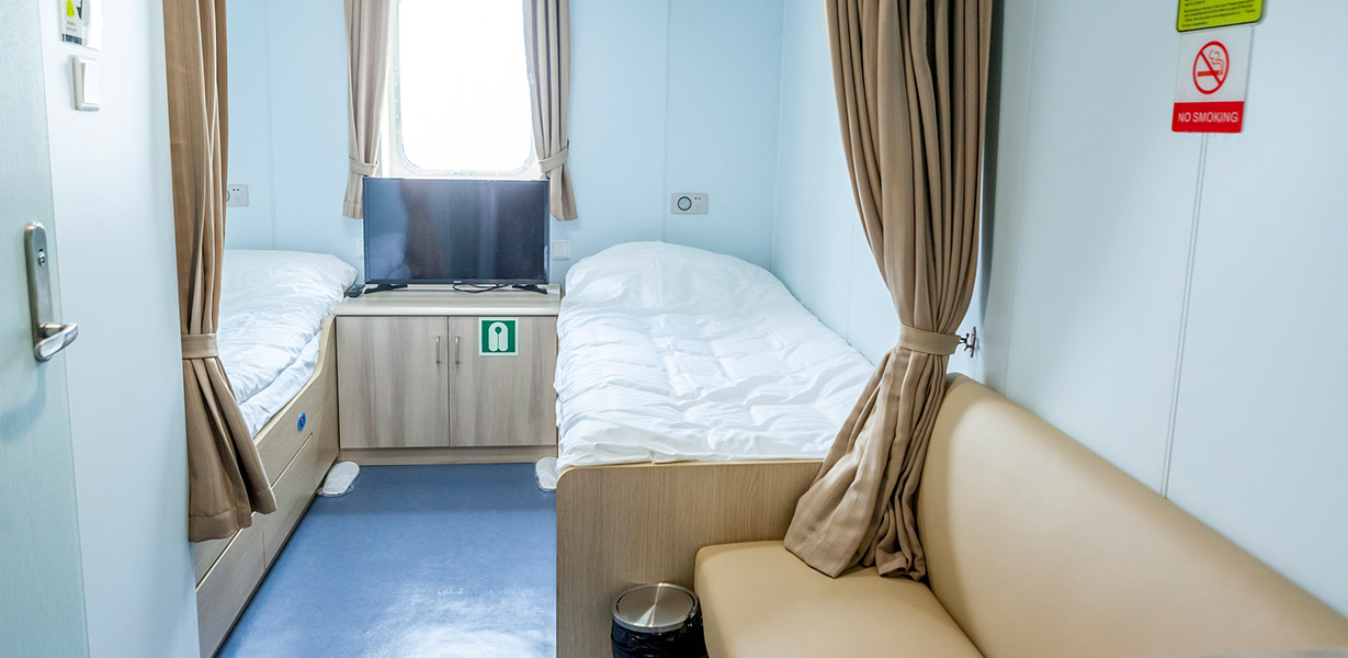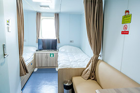 - 객실구성 : 2층침대2, 화장실1, 소파, 캐리어보관함, TV