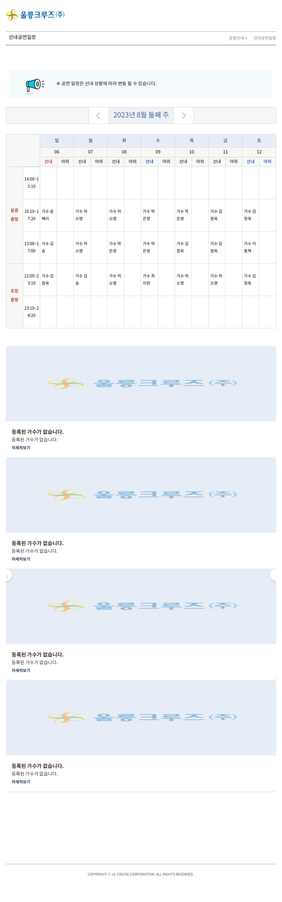 ※ 공연 일정은 선내 상황에 따라 변동 될 수 있습니다.