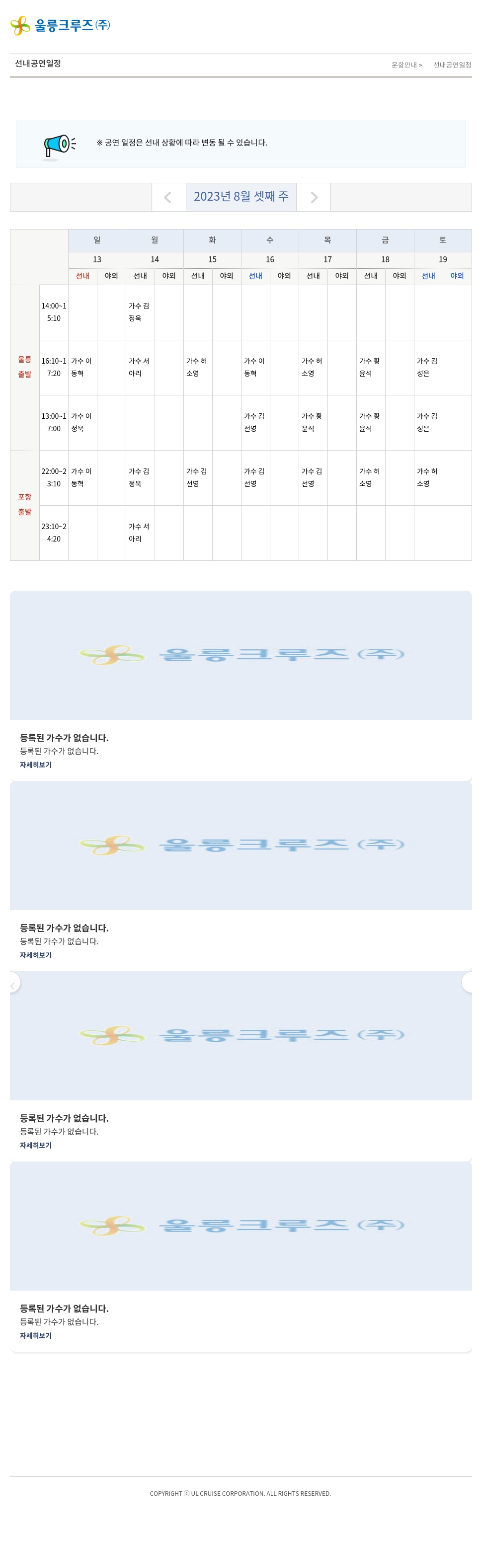 ※ 공연 일정은 선내 상황에 따라 변동 될 수 있습니다.