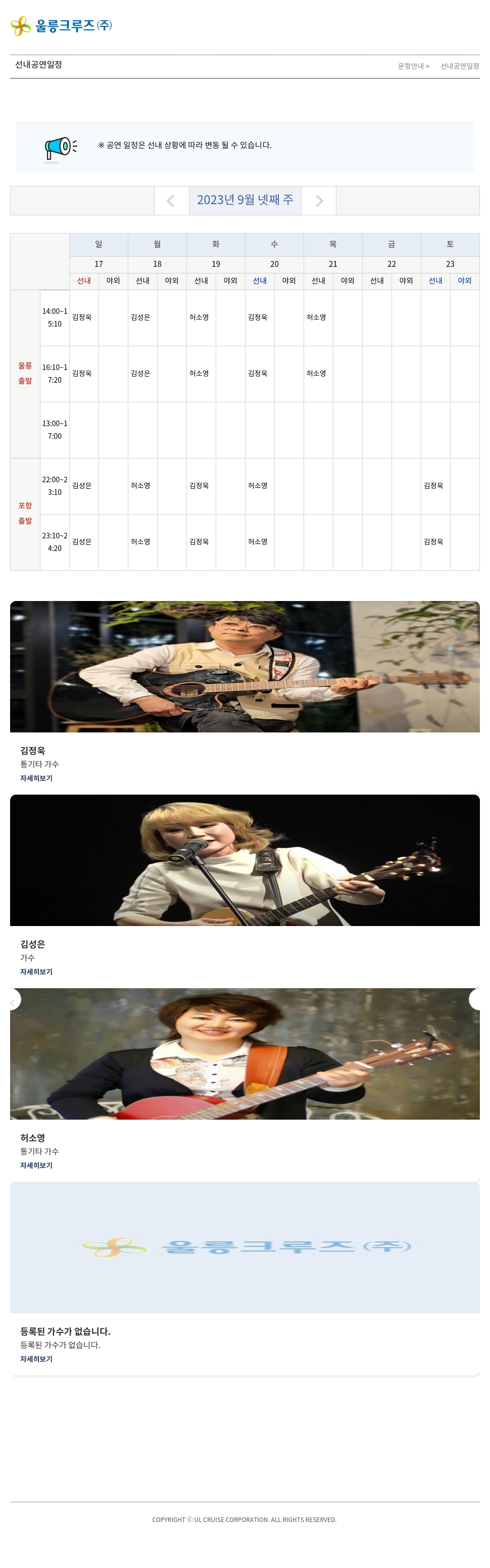 ※ 공연 일정은 선내 상황에 따라 변동 될 수 있습니다.