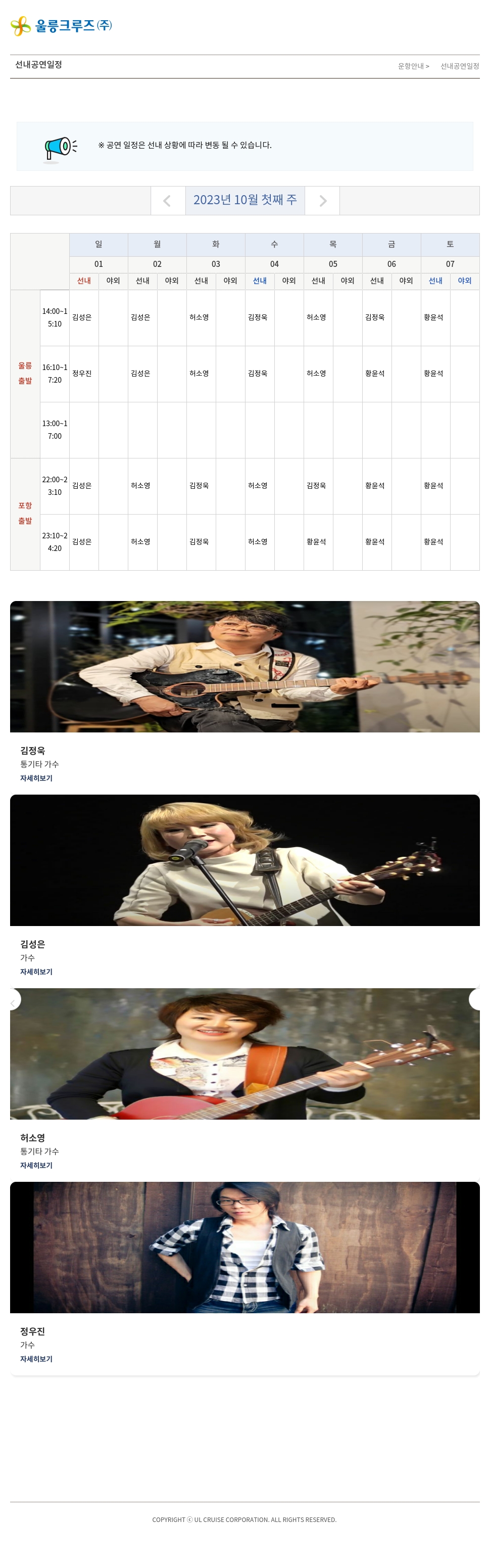 ※ 공연 일정은 선내 상황에 따라 변동 될 수 있습니다.