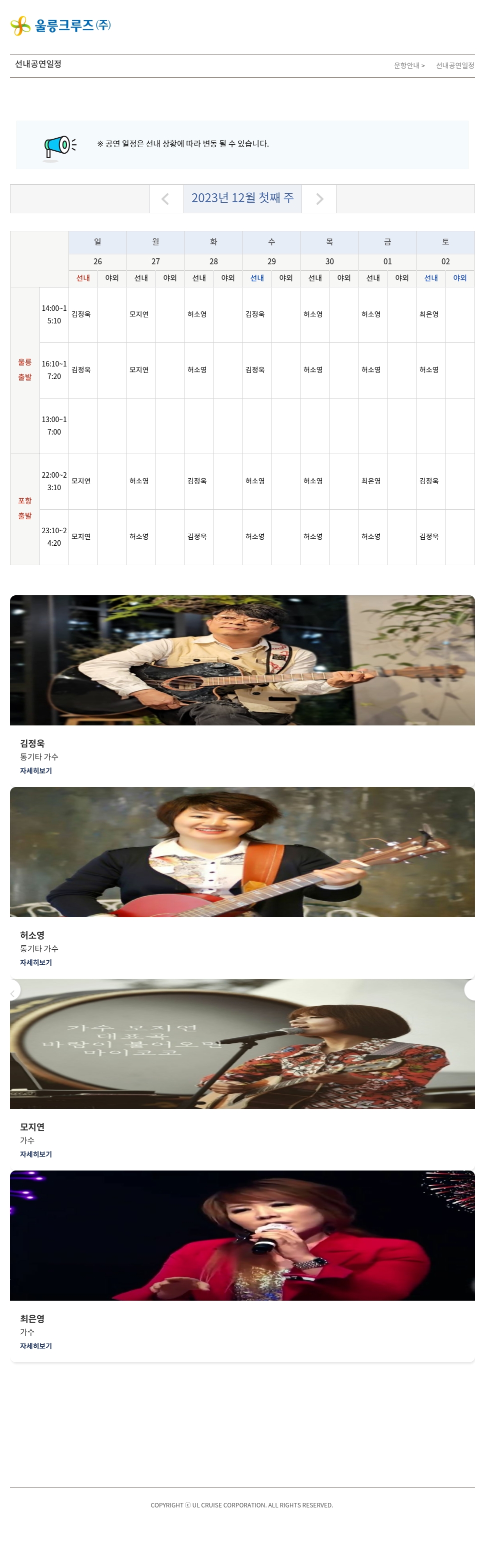 ※ 공연 일정은 선내 상황에 따라 변동 될 수 있습니다.