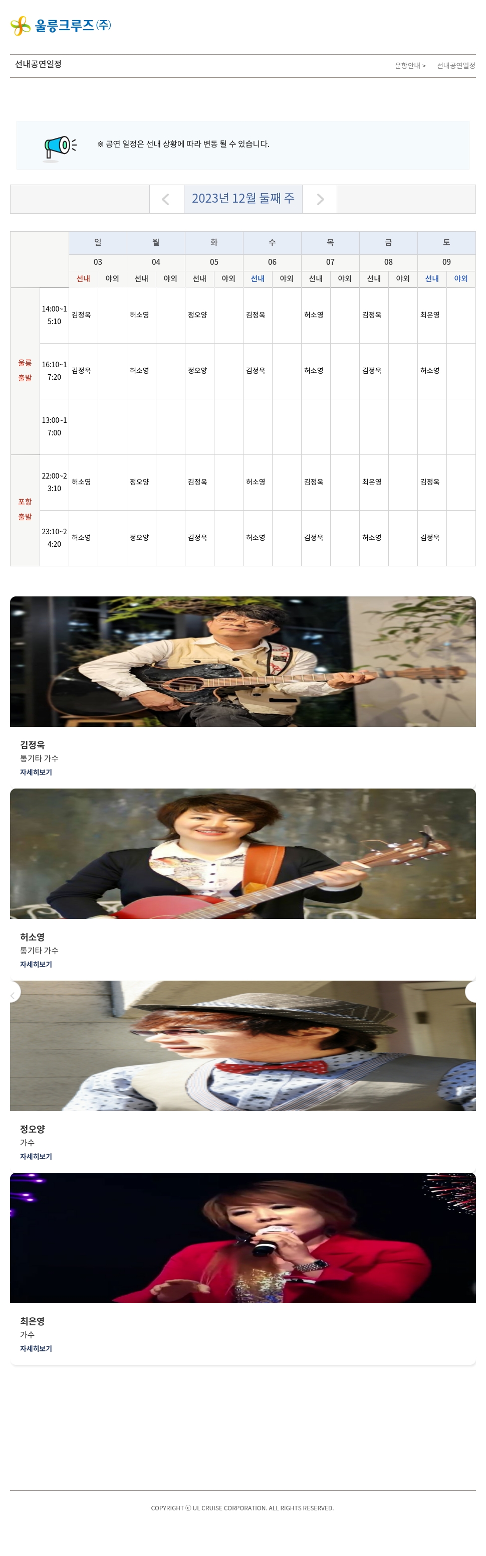 ※ 공연 일정은 선내 상황에 따라 변동 될 수 있습니다.
