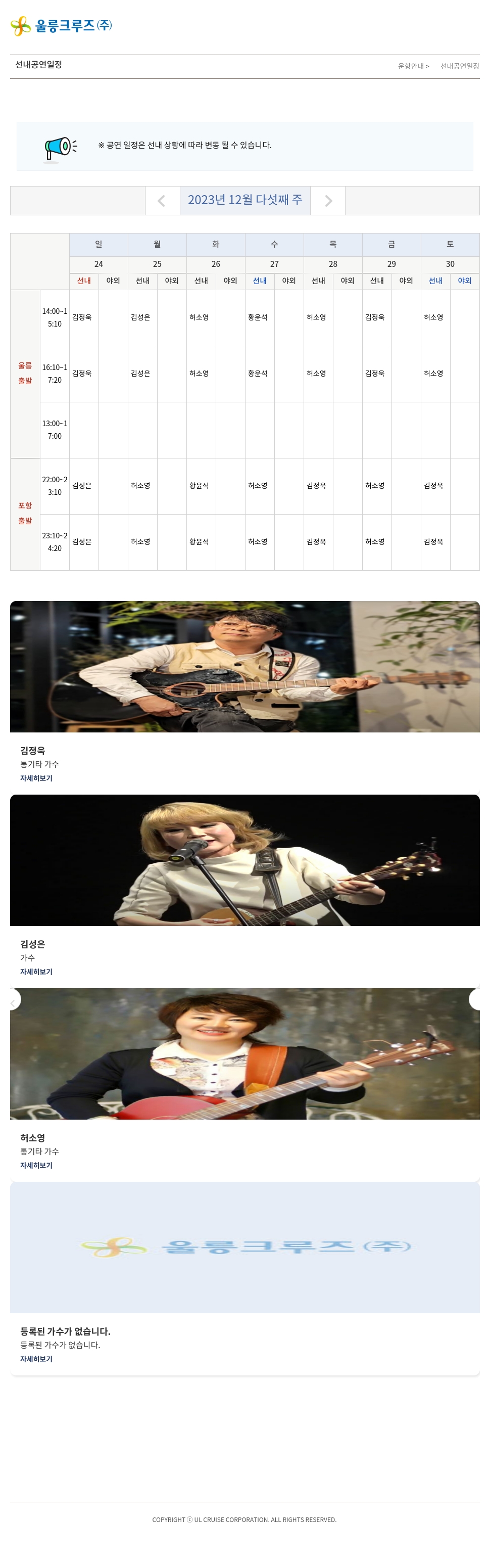 ※ 공연 일정은 선내 상황에 따라 변동 될 수 있습니다.