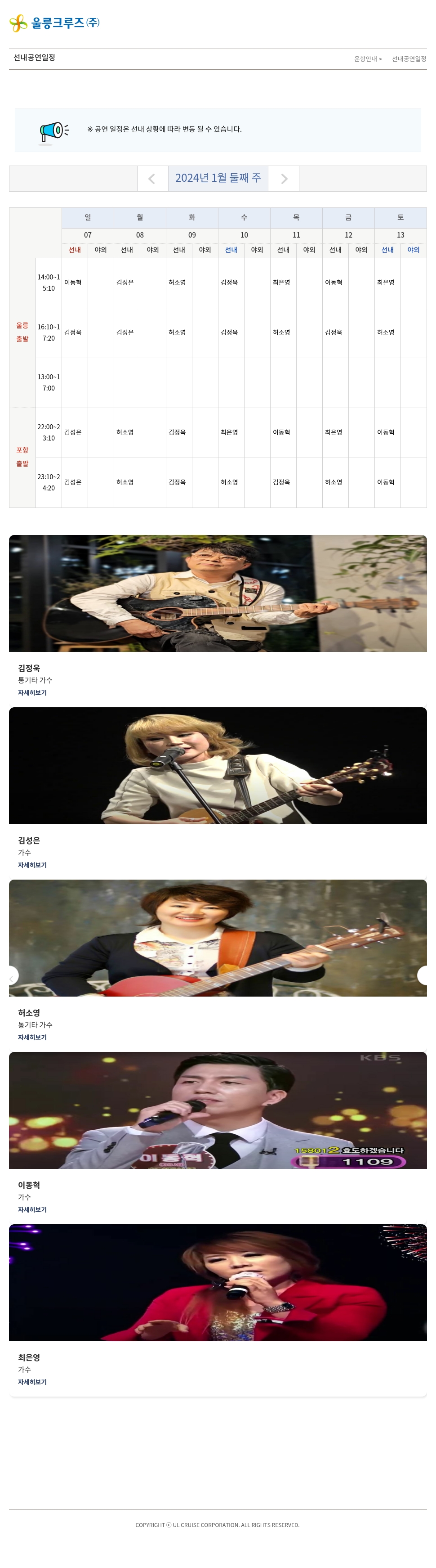 ※ 공연 일정은 선내 상황에 따라 변동 될 수 있습니다.