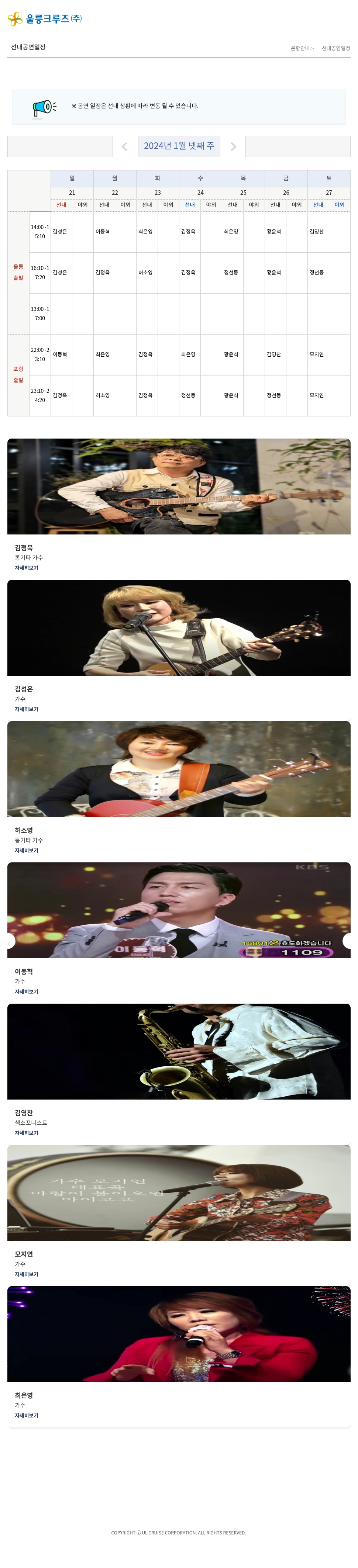 ※ 공연 일정은 선내 상황에 따라 변동 될 수 있습니다.