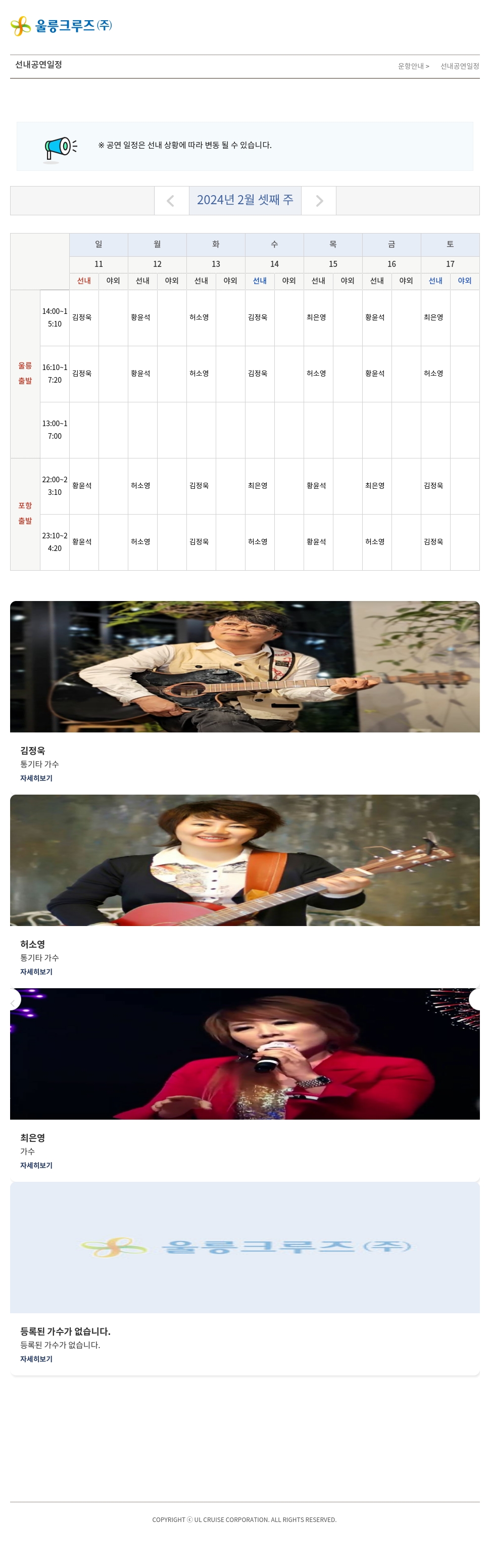 ※ 공연 일정은 선내 상황에 따라 변동 될 수 있습니다.