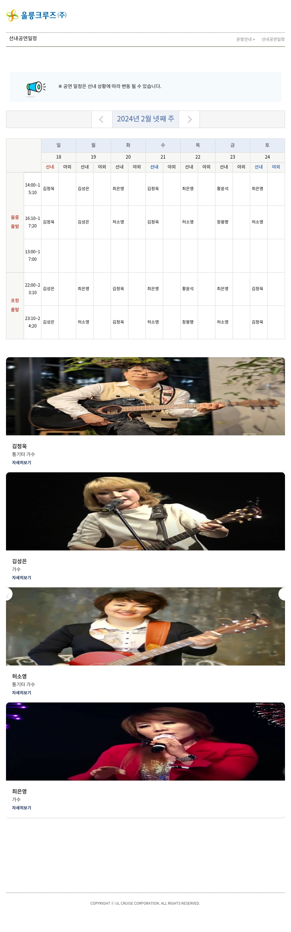 ※ 공연 일정은 선내 상황에 따라 변동 될 수 있습니다.