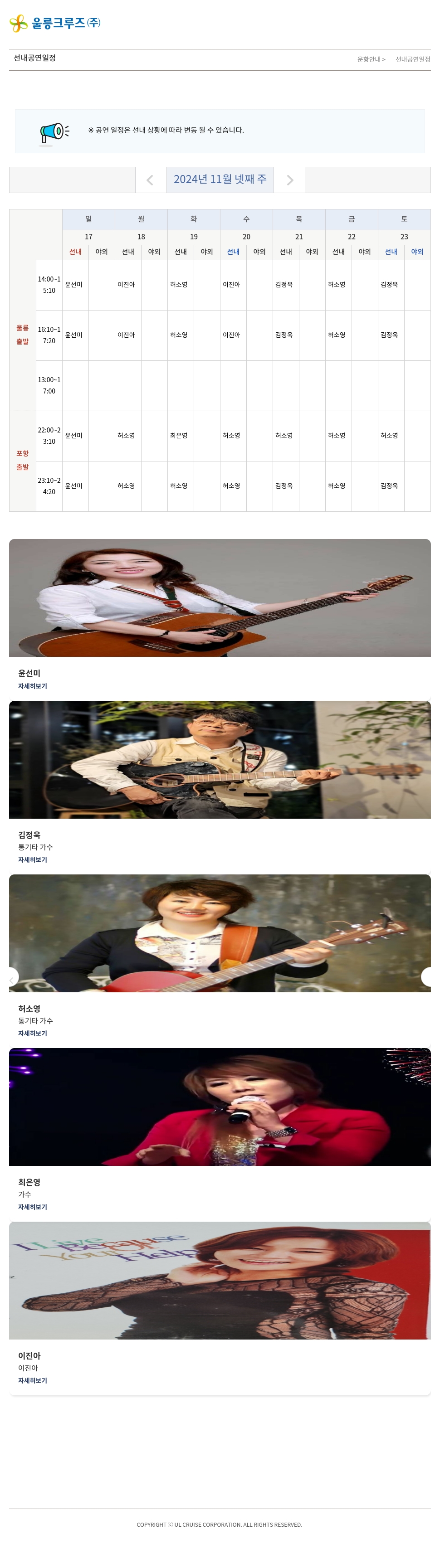 ※ 공연 일정은 선내 상황에 따라 변동 될 수 있습니다.