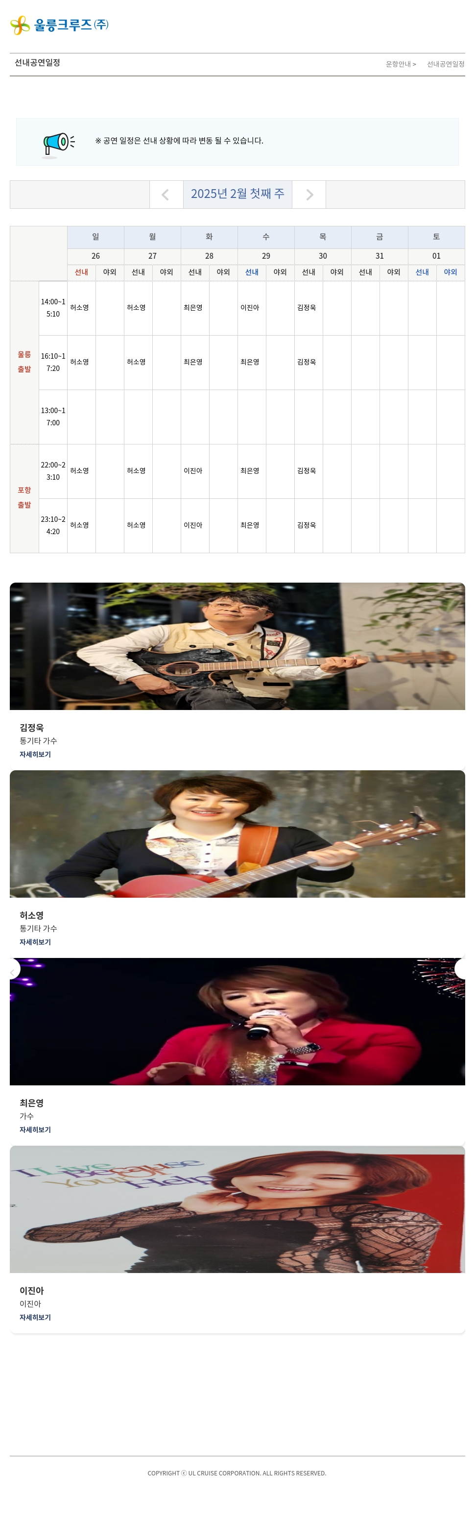 ※ 공연 일정은 선내 상황에 따라 변동 될 수 있습니다.