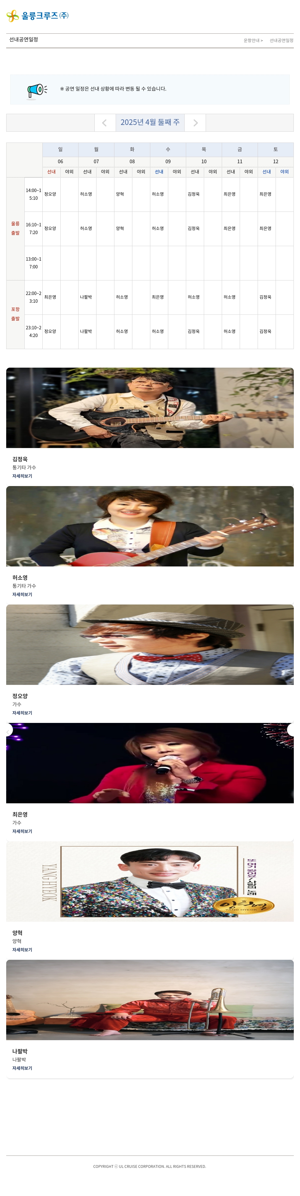 ※ 공연 일정은 선내 상황에 따라 변동 될 수 있습니다.