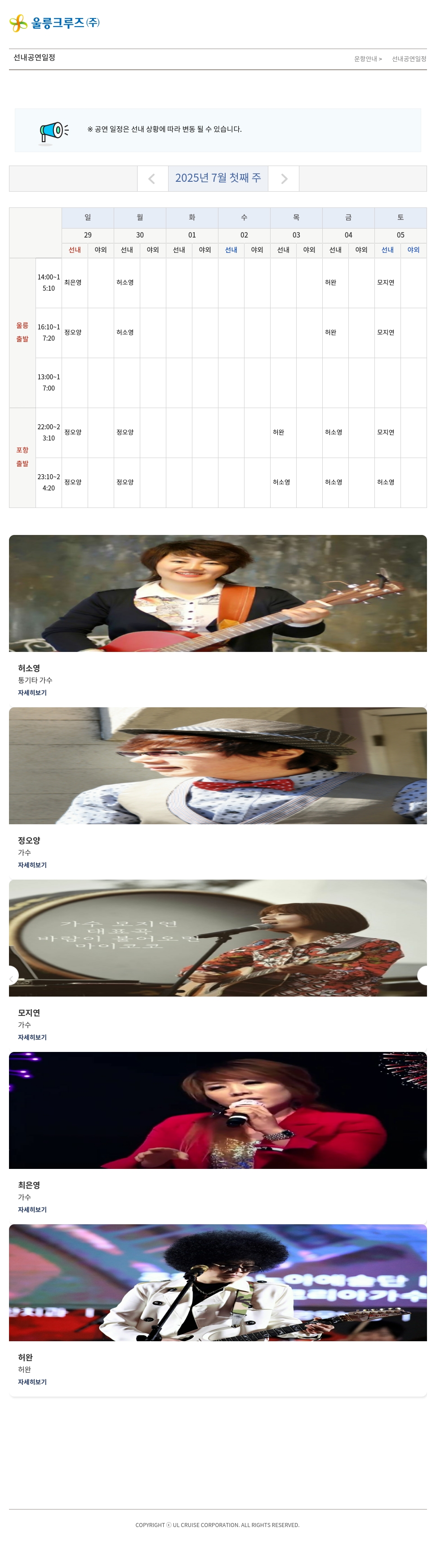 ※ 공연 일정은 선내 상황에 따라 변동 될 수 있습니다.