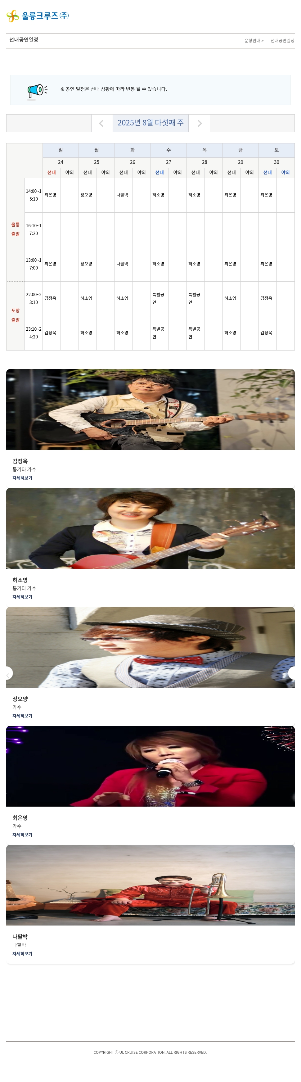 ※ 공연 일정은 선내 상황에 따라 변동 될 수 있습니다.