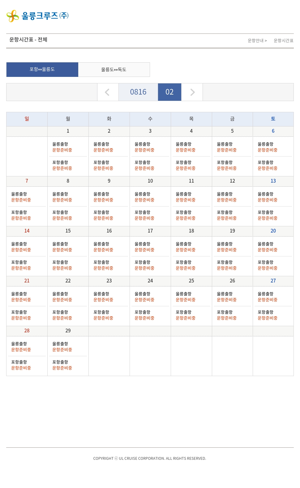 날짜별 일정 확인 0816년 02월 4232건, 본 데이터는 일요일, 월요일, 화요일, 수요일, 목요일, 금요일, 토요일로 구성되어 있습니다.