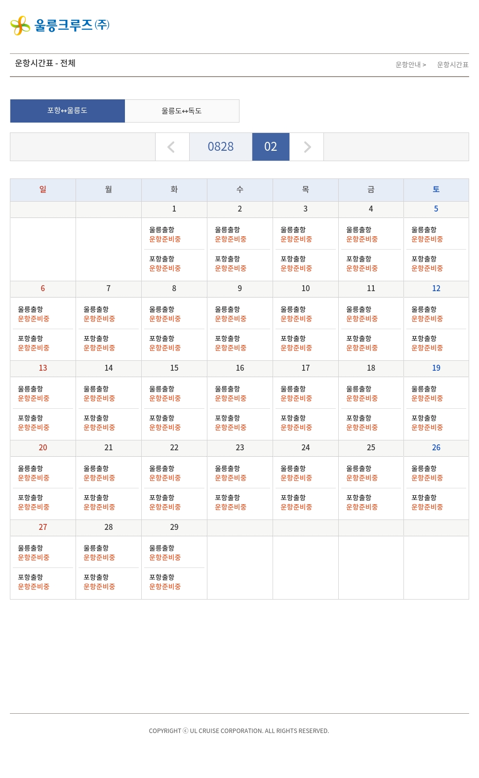 날짜별 일정 확인 0828년 02월 4232건, 본 데이터는 일요일, 월요일, 화요일, 수요일, 목요일, 금요일, 토요일로 구성되어 있습니다.