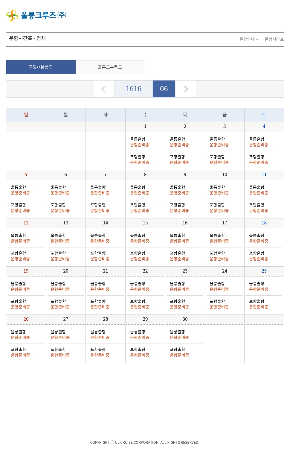 날짜별 일정 확인 1616년 06월 4232건, 본 데이터는 일요일, 월요일, 화요일, 수요일, 목요일, 금요일, 토요일로 구성되어 있습니다.
