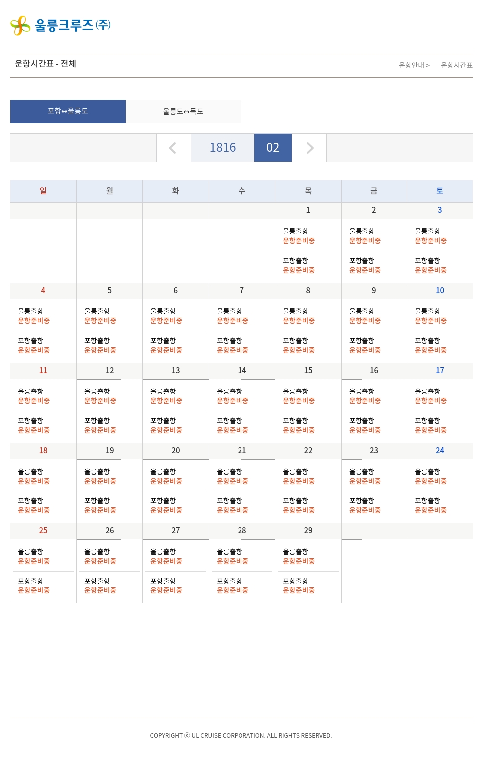 날짜별 일정 확인 1816년 02월 4232건, 본 데이터는 일요일, 월요일, 화요일, 수요일, 목요일, 금요일, 토요일로 구성되어 있습니다.