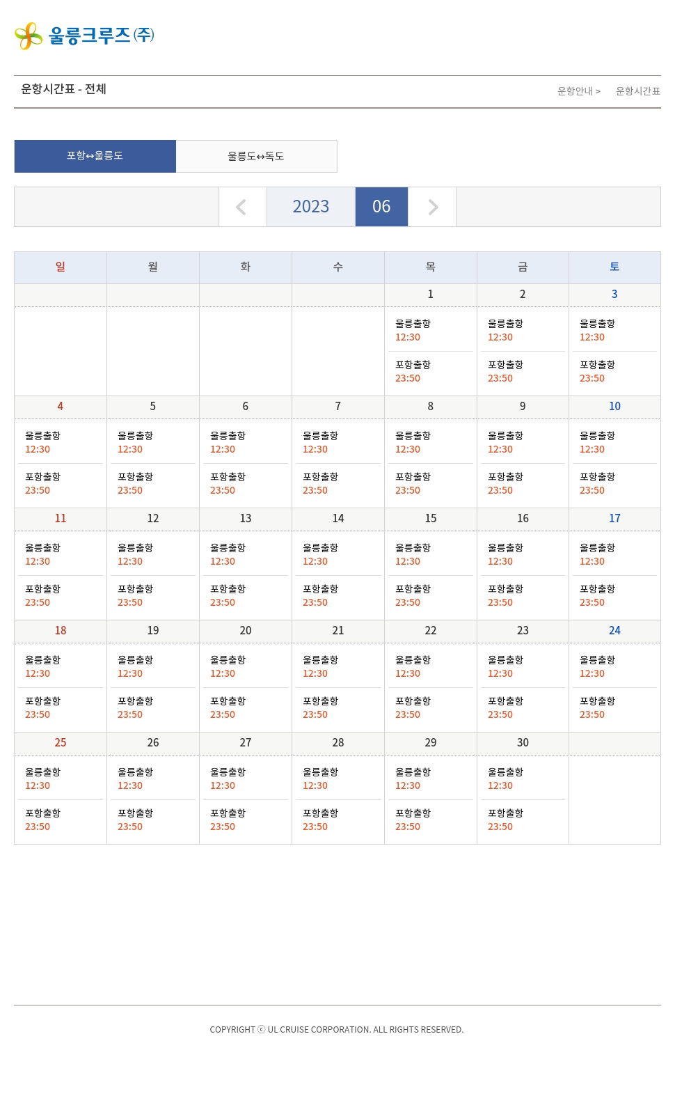 날짜별 일정 확인 2023년 06월 4262건, 본 데이터는 일요일, 월요일, 화요일, 수요일, 목요일, 금요일, 토요일로 구성되어 있습니다.