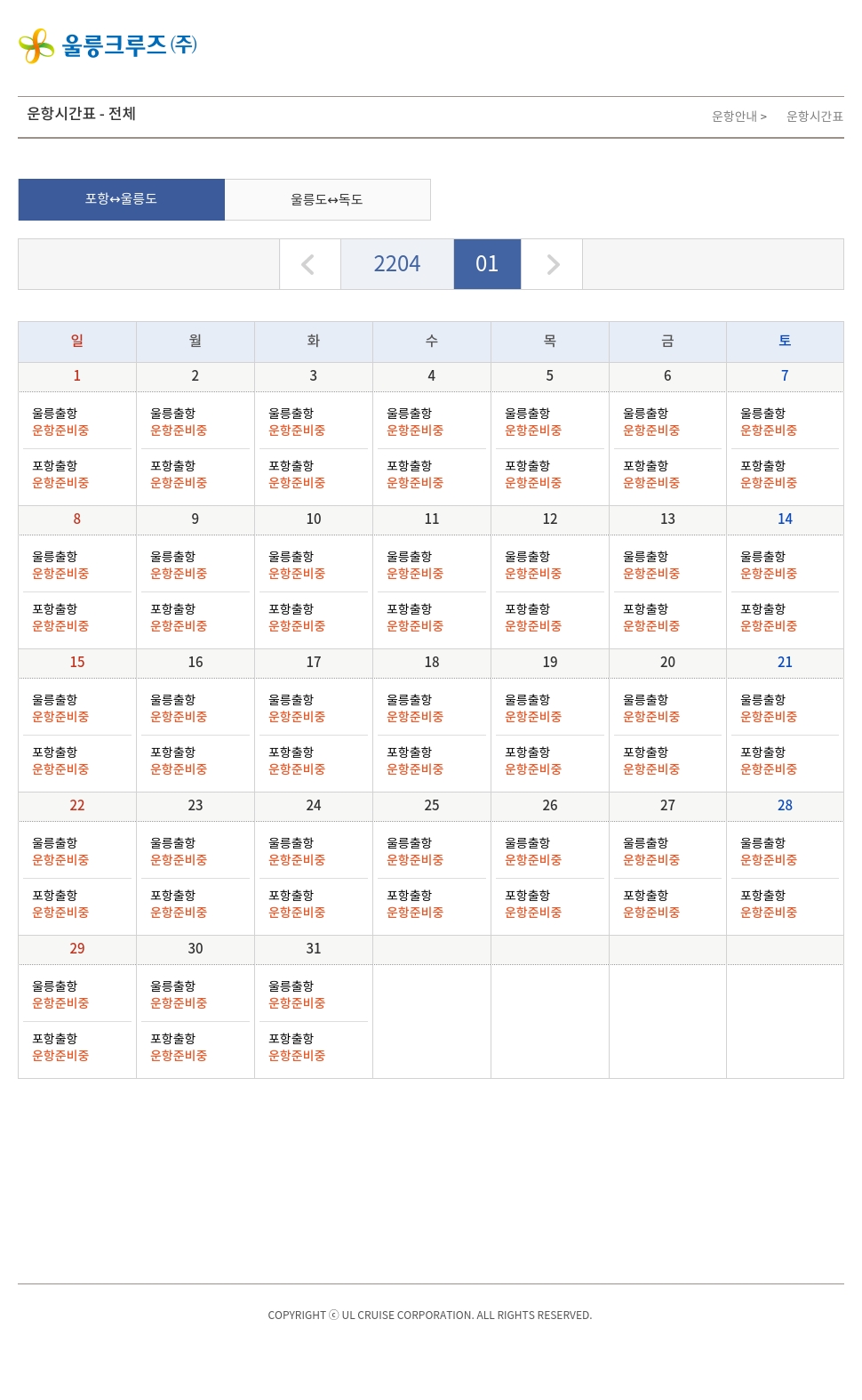 날짜별 일정 확인 2204년 01월 4232건, 본 데이터는 일요일, 월요일, 화요일, 수요일, 목요일, 금요일, 토요일로 구성되어 있습니다.