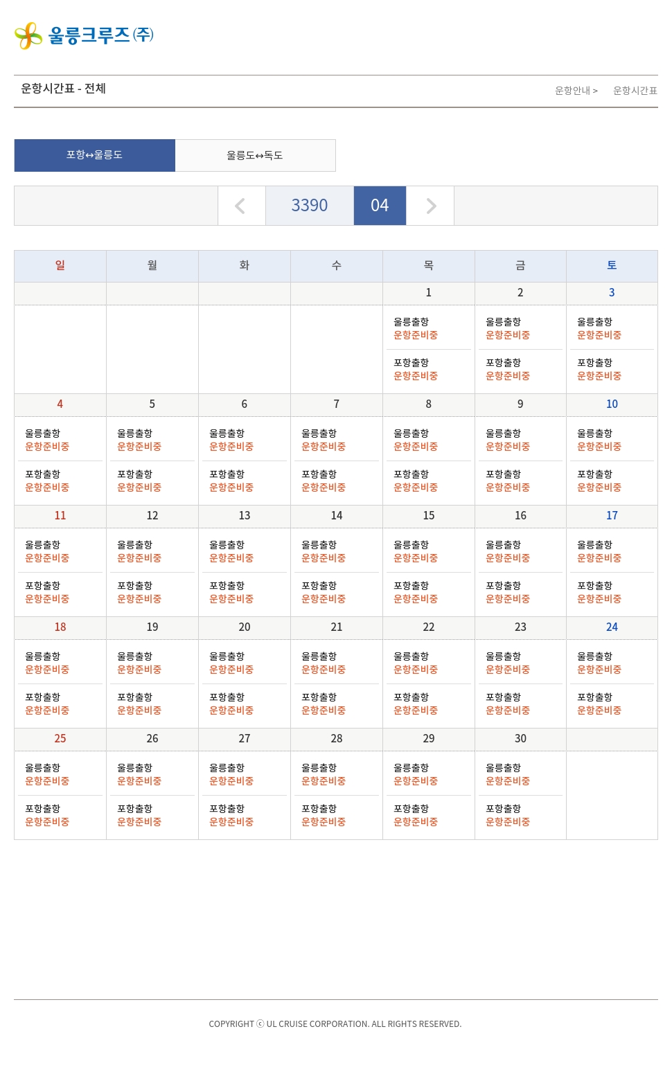 운항시간표