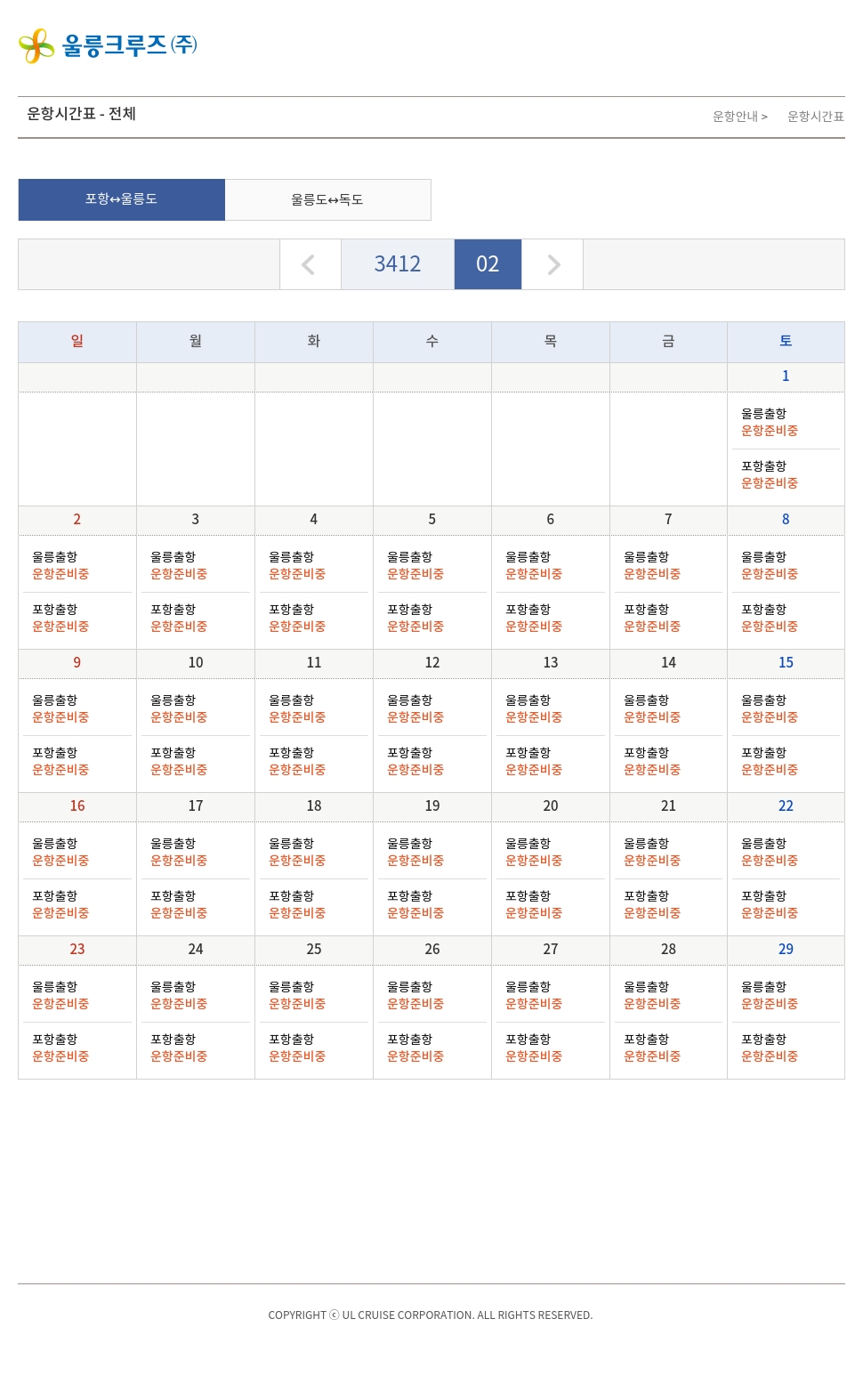 날짜별 일정 확인 3412년 02월 4232건, 본 데이터는 일요일, 월요일, 화요일, 수요일, 목요일, 금요일, 토요일로 구성되어 있습니다.
