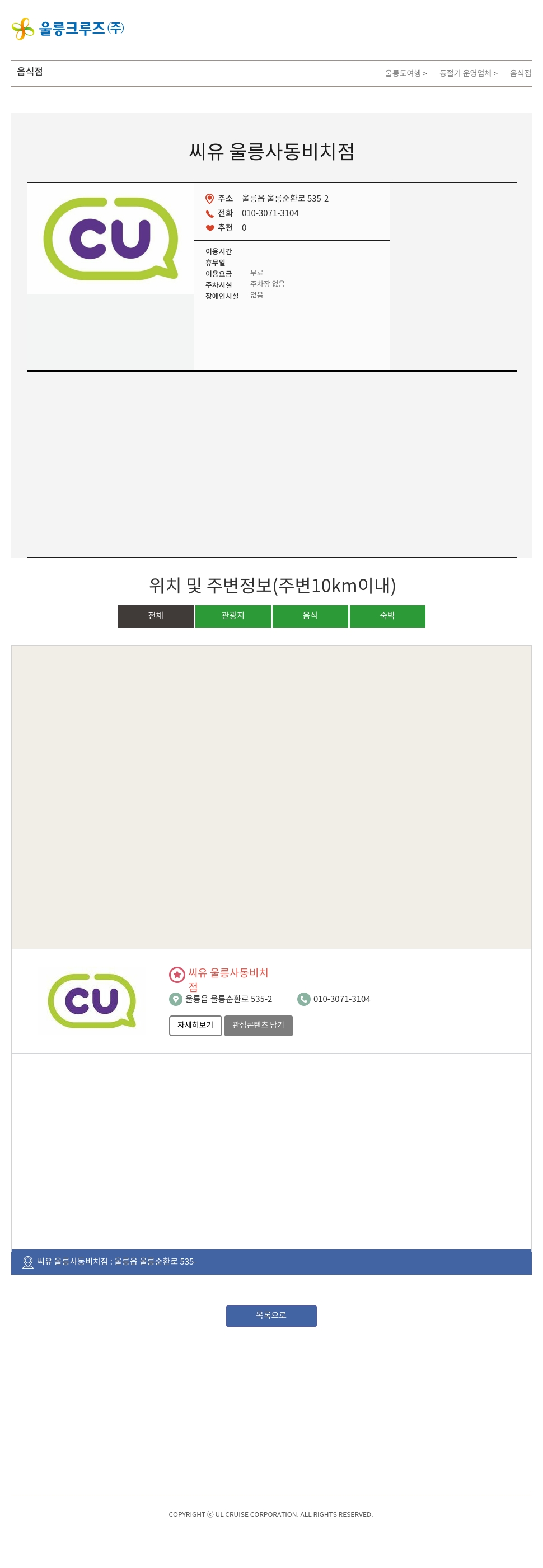 씨유 울릉사동비치점 : 울릉읍 울릉순환로 535-2