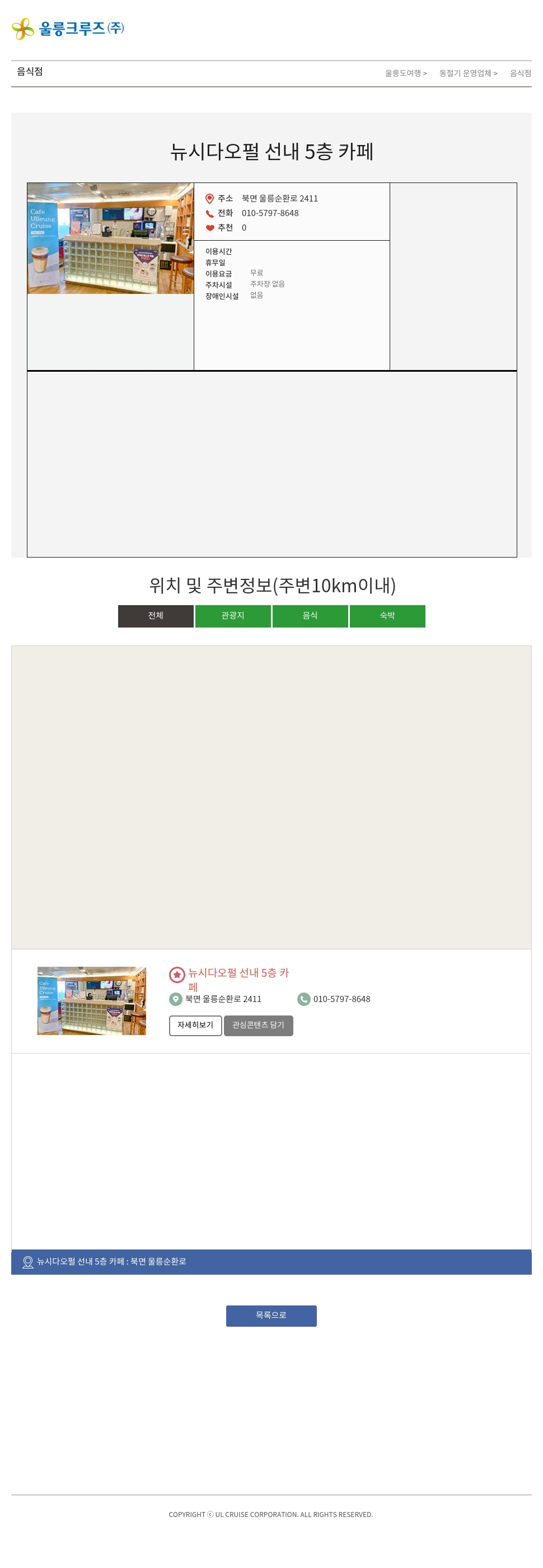 뉴시다오펄 선내 5층 카페 : 북면 울릉순환로 2411
