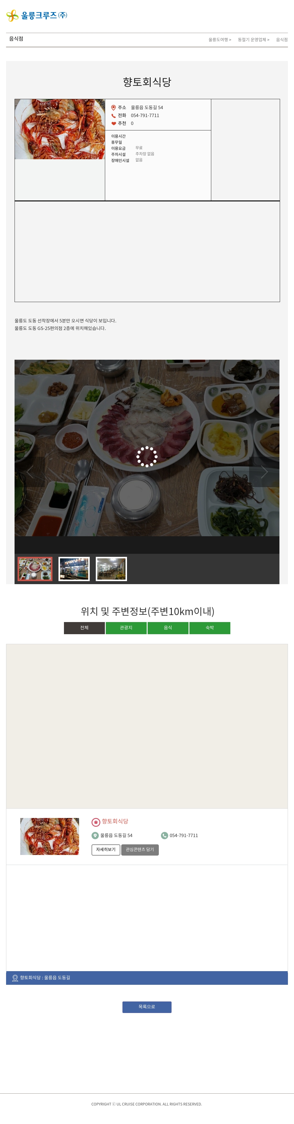 울릉도 도동 선착장에서 5분만 오시면 식당이 보입니다. 울릉도 도동 GS-25편의점 2층에 위치해있습니다.