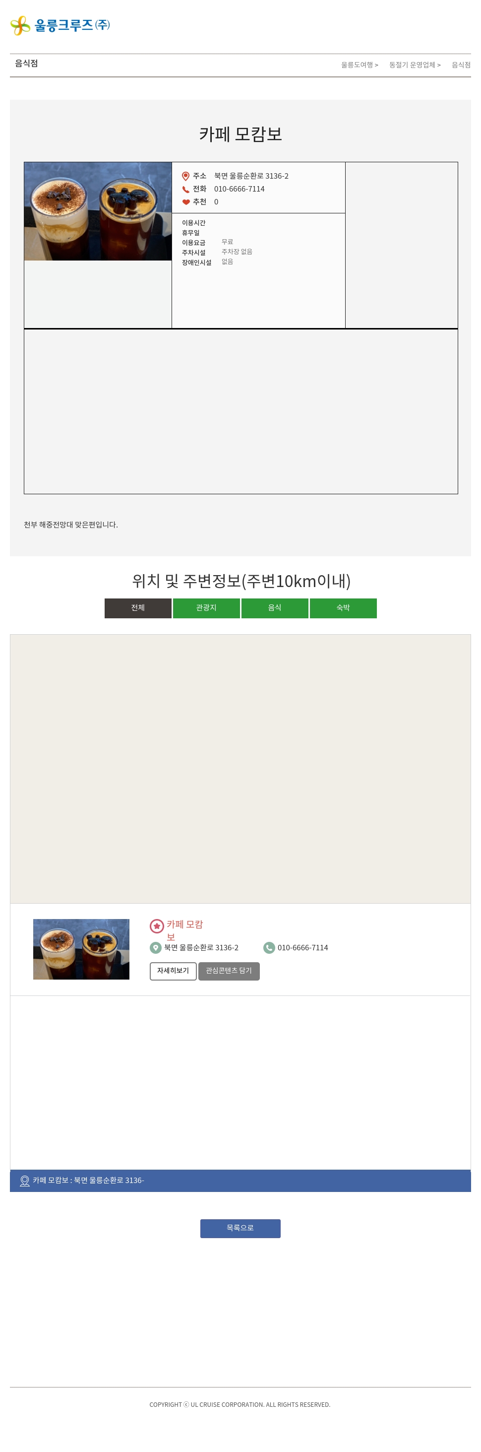 카페 모캄보 : 북면 울릉순환로 3136-2